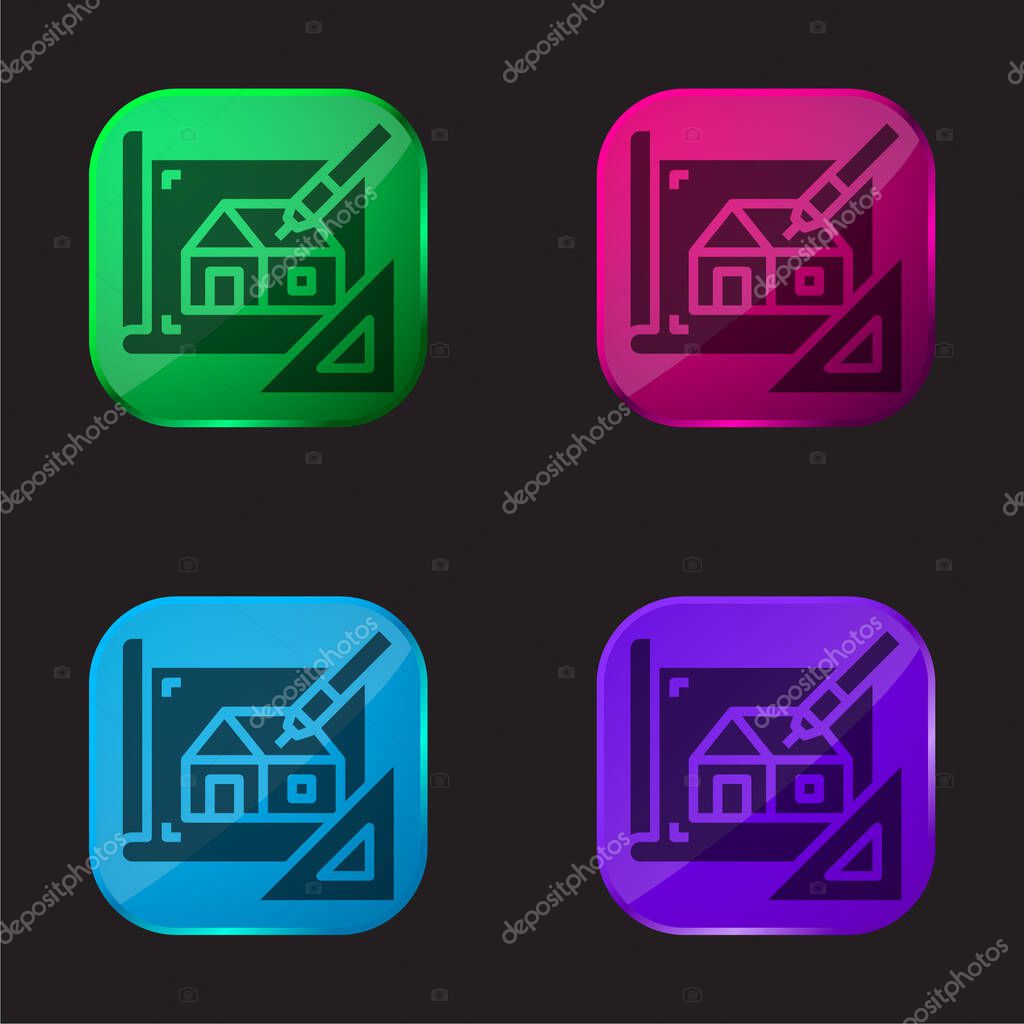 Blueprint four color glass button icon