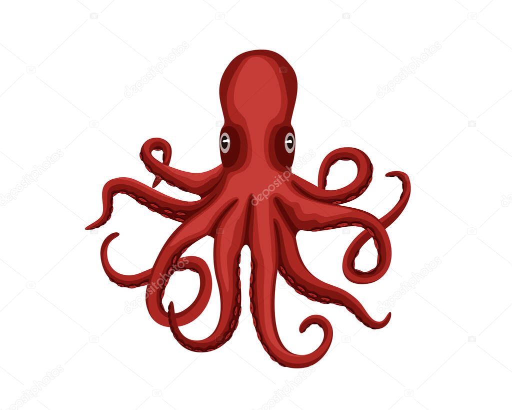 Octopus sea animal mascot logo design. Realistic giant squid vector illustration