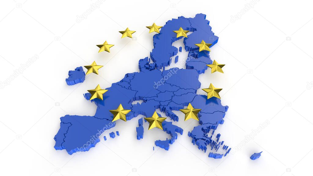 Blue EU card and gold stars. 3d render