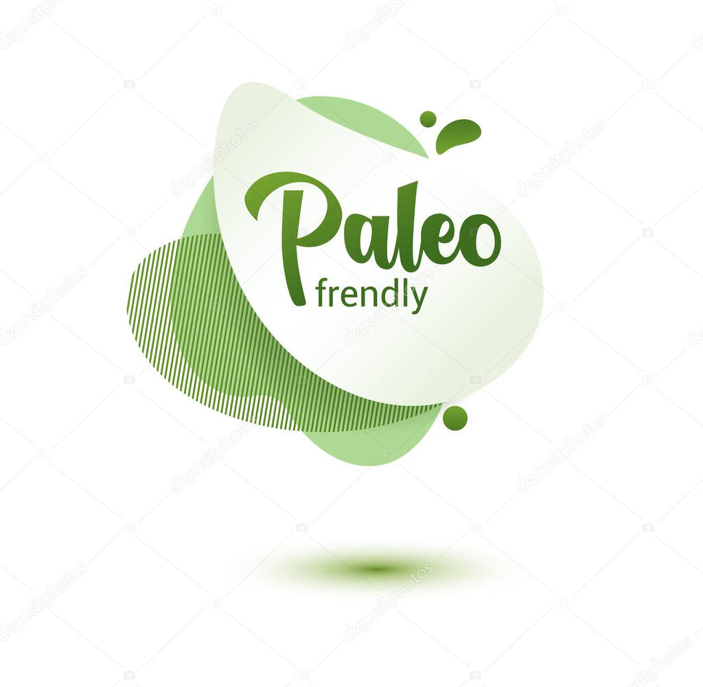 - Paleo diet frendly badge. Green amoeba design of sticker for paleo diet menu, poster, flyer.