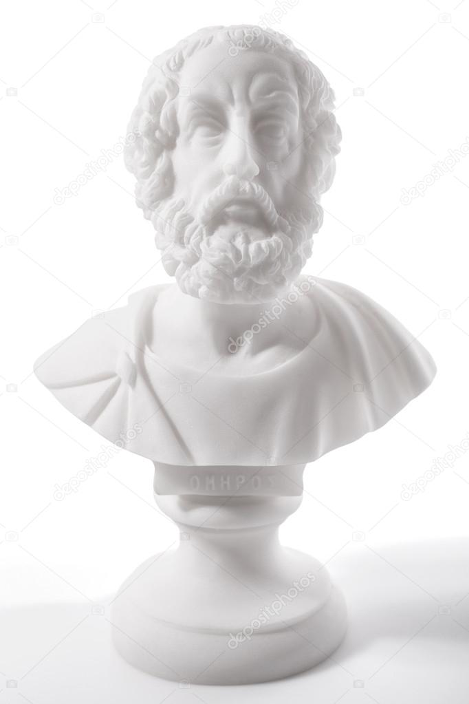 Homer (800-701 B.C.E.) is the author of the Iliad and the Odyssey, and is revered as the greatest of Greek epic poets. Sculpture isolated on white background