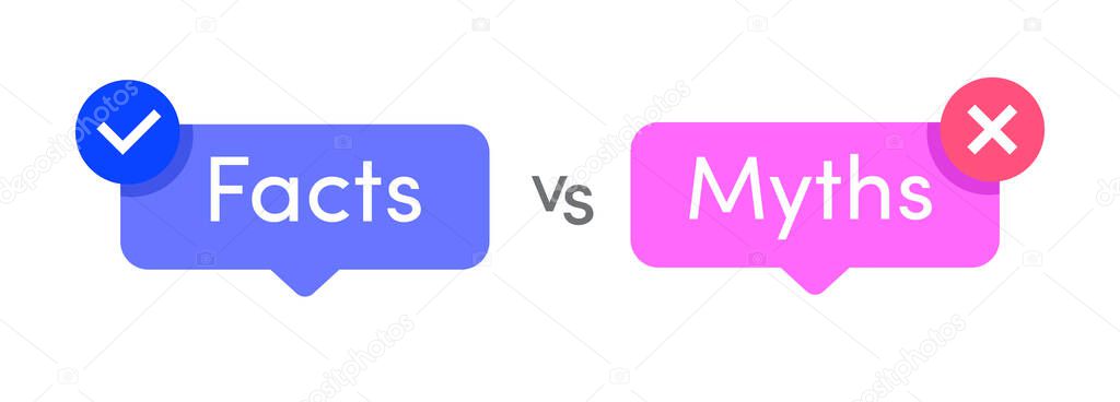 Facts vs myths icon set isolated on white background. Fact-checking or easy compare evidence. Vector Illustration 10 eps