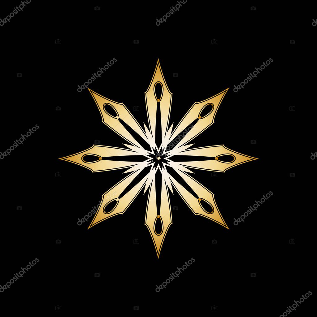 - Gold Snowflake. Flat style. Symbol of winter, Christmas, New Year holiday. Golden silhouette on black background. Vector illustration.