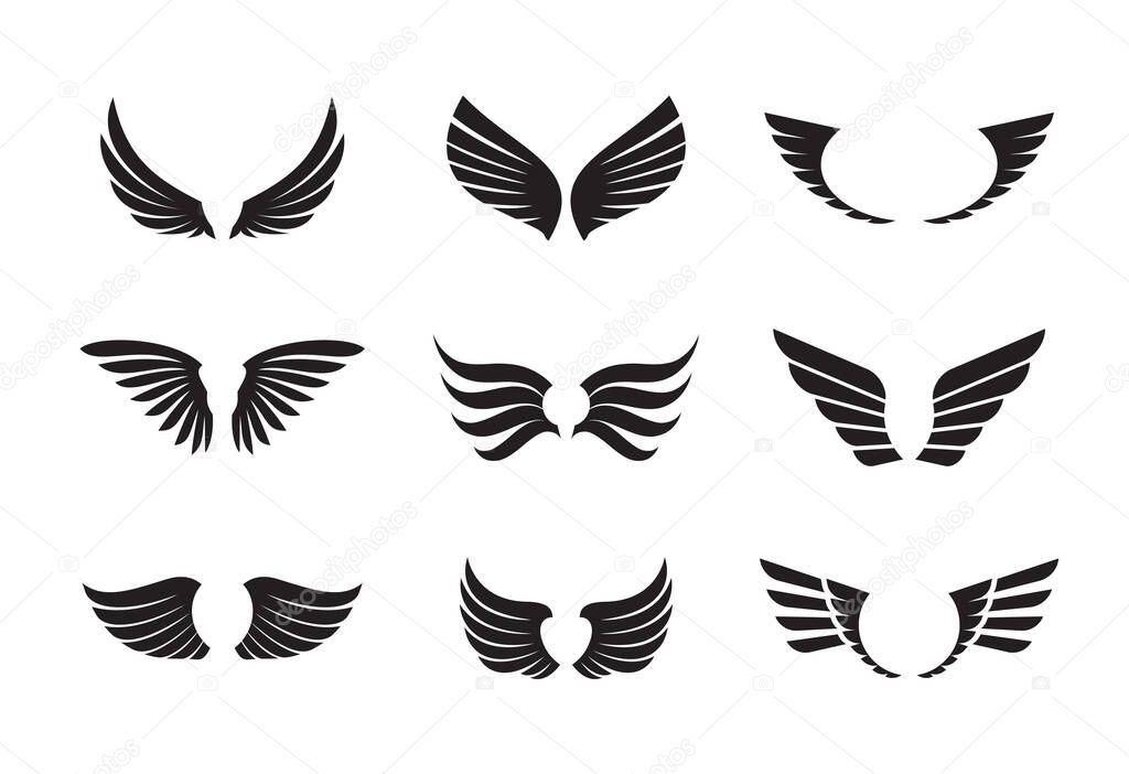 - Set of Black Wings. Vector Illustration and outline Icons. Symbol of freedom.