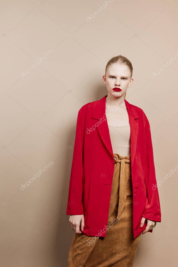 COLOR RED BACKGROUND LUXURY BEAUTIFUL BRIGHT STUDIO ELEGANCE GIRL FEMALE YOUNG PEOPLE BEAUTY MODEL PORTRAIT CAUCASIAN HAIR BLOND STYLE HAND FASHION SKIN HAT PRETTY SUIT INDOOR BEIGE ELEGANT STYLISH GLAMOUR WOMAN LIFESTYLE MAKE UP MAKEUP HAIRSTYLE TRENDY LADY CLOTHES SEXY VOGUE CHIC WEAR ATTRACTIVE LIPS POSING SLIM CONFIDENT JACKET FASHIONABLE JEWELLERY