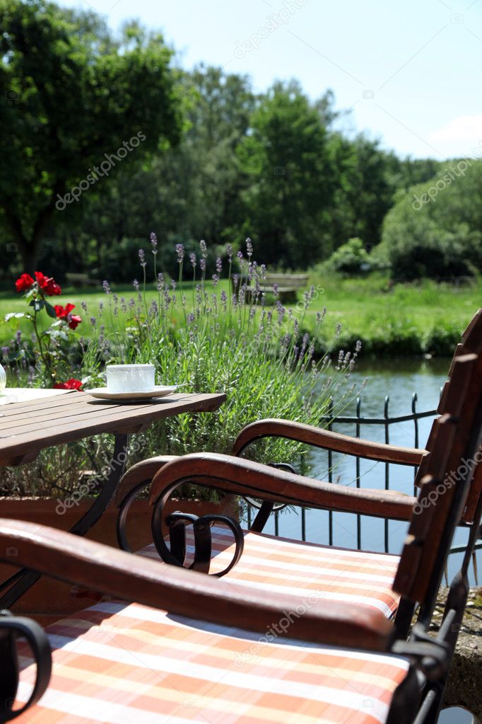 TABLE GREEN CHAIRS NOBODY REFLECTION EMPTY DECOR PARK OUTDOOR MORNING WATER SUNSHINE FLOWERS NATURAL WOODEN RESTAURANT COFFEE VINTAGE RIVER TRANQUIL ELEGANT STYLISH BEVERAGE REFRESHMENT WITH FURNITURE WOOD SCENIC IRON PERFECT AT LAKE SEATING CHILLING CATERING PATIO CUPS PATHWAY VACANT WATERSIDE CAFETERIA HOSPITALITY WROUGHT OPEN AIR