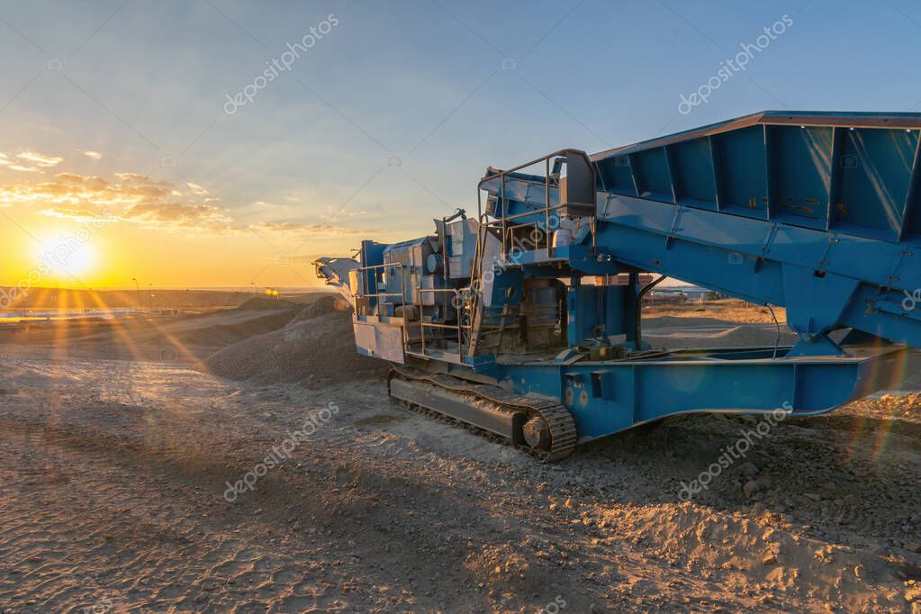 - Heavy and mobile machinery in a quarry to transform stone into construction material