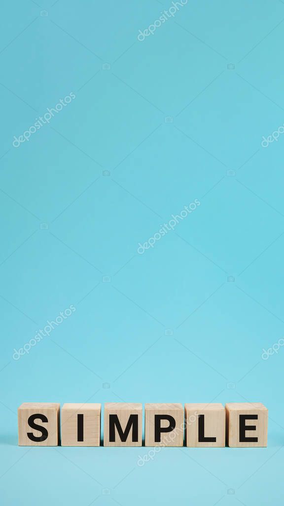 SIMPLE word from wooden blocks with letters, to make something easy, keep it simple concept, blue background.