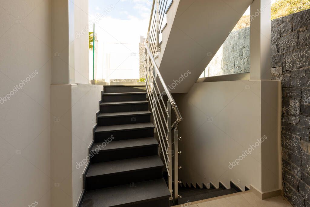 - Stairs with aluminum handrails in a hotel
