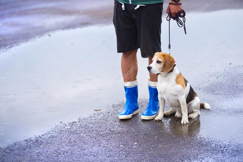 LEISURE FUN BLUE DAY HAPPY PERSON LOVE SUMMER FEET JOY NATURE WET OUTDOOR RAIN WATER AUTUMN CUTE BEST ANIMAL MAN FRIEND PET WALKING WEATHER SPLASH MOTION URBAN CANINE DOG PUPPY TWO ACTIVE LEGS PLAYING TOGETHER STREET CLOUDY RUN WALK OUTSIDE CASUAL DETAILS RETRIEVER RAINY MUD PUDDLE BEAGLE DOWNPOUR GUMBOOTS WELLIES