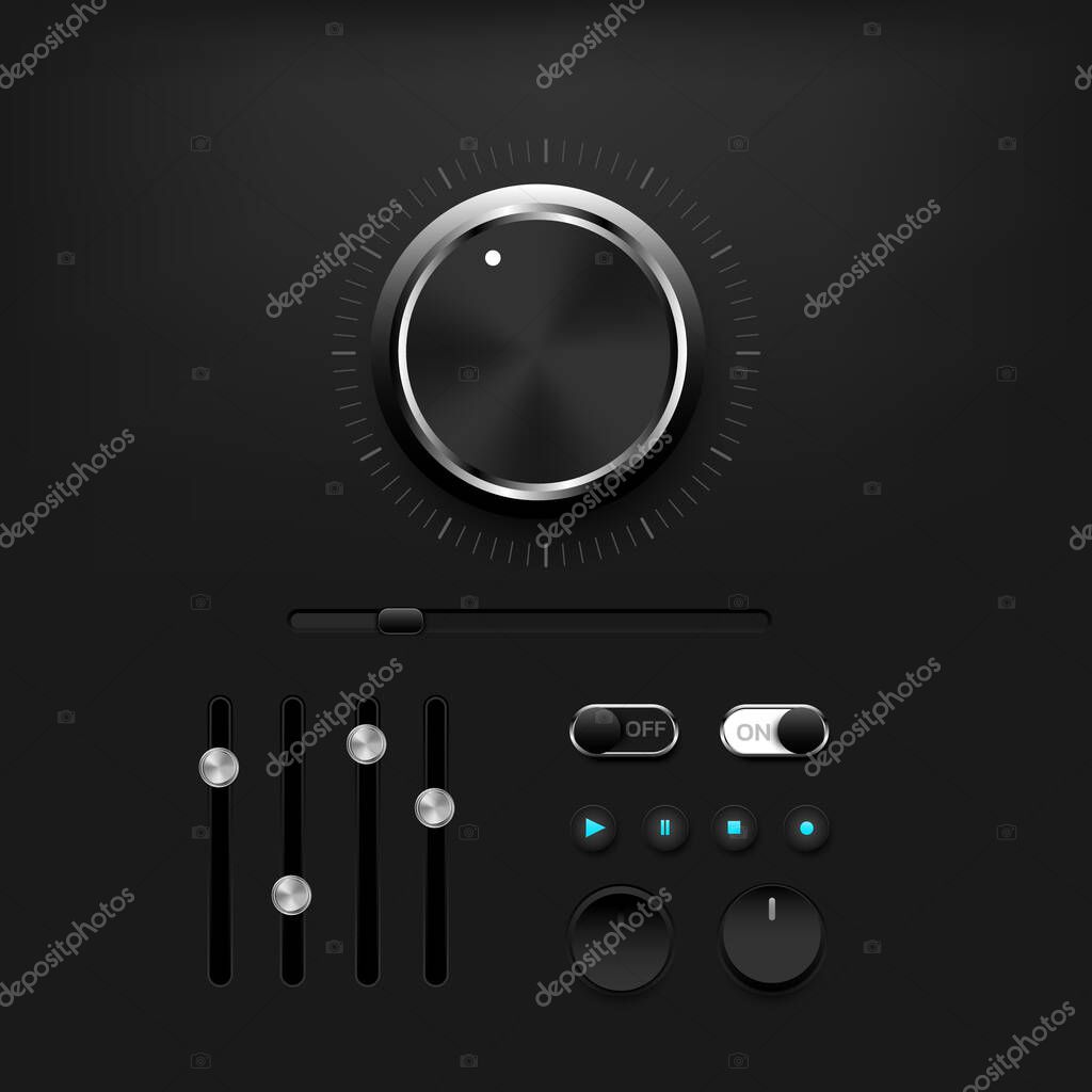 - Modern control button on dark background