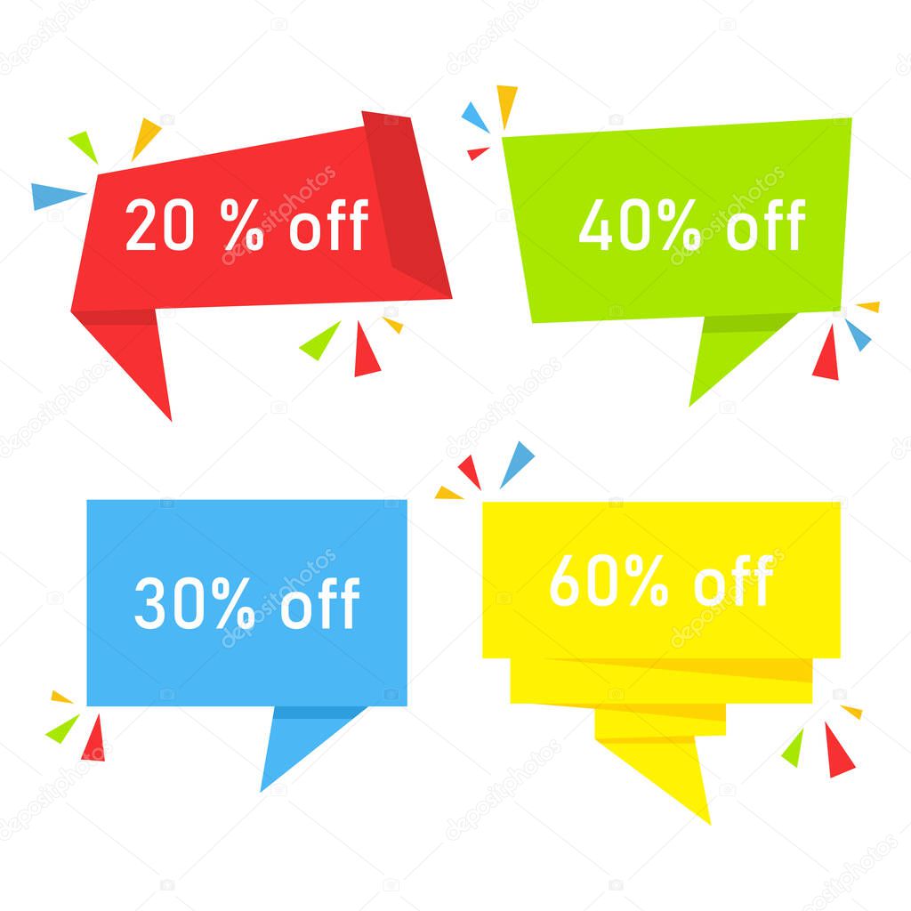 - Sale banner design template. Flat origami speech bubble special offer discount vector illustration.