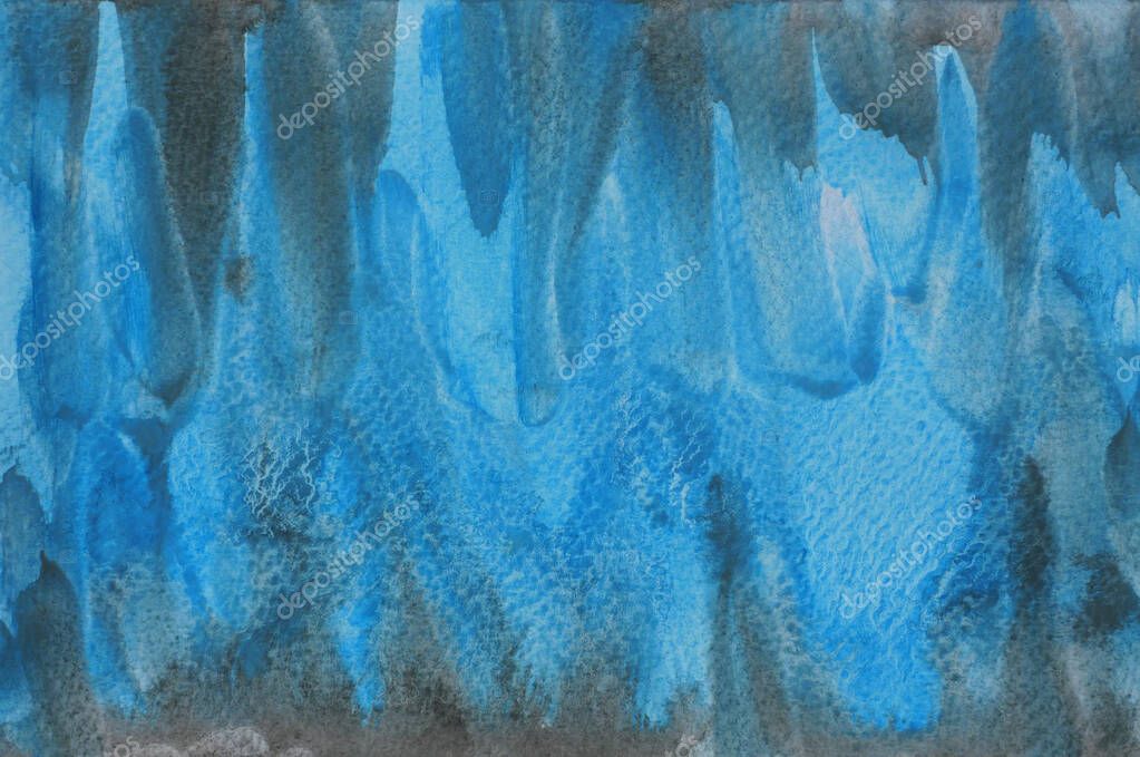 - Abstract background and texture pattern black color flow on blue background, Illustration watercolor hand draw and painted on paper