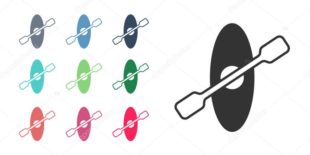 - Black Kayak and paddle icon isolated on white background. Kayak and canoe for fishing and tourism. Outdoor activities. Set icons colorful. Vector.