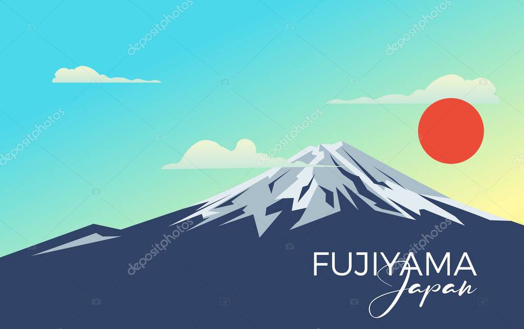 - Fujiyama vector illustration. Japanese landscape with Fuji mountain