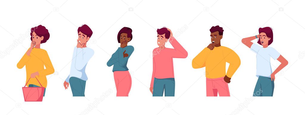 - Brooding People Scratch Their Heads, Remember Information, Look For Answers To Questions. Thoughtful Pensive Male And Female Characters Searching Solution, Mental Research. Cartoon Vector Illustration