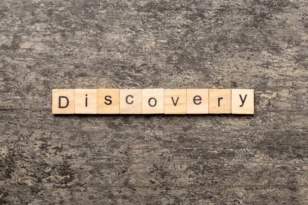Discovery word written on wood block. discovery text on table, concept.