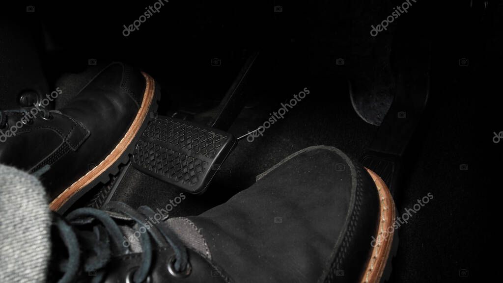 BREAK CLOSE UP CLOSEUP PUSH FEET TRANSPORT VEHICLE TRANSPORTATION POWER RUBBER CAR SPEED DRIVING PRESS PUSHING AUTO DRIVE SAFETY FOOT PEDAL SHOE DRIVER SHOES SEAT CONTROL AUTOMOBILE AUTOMOTIVE START SAFE STOP COCKPIT PRESSING TRANSMISSION LEVER ACCIDENT ACCELERATE ACCELERATION BRAKE CLUTCH FASTER TREADLE PEDALS ACCELERATOR BRAKE PEDAL ACCELERATOR PEDAL KICK DOWN INSIDE THE VEHICLE FOOT BRAKE