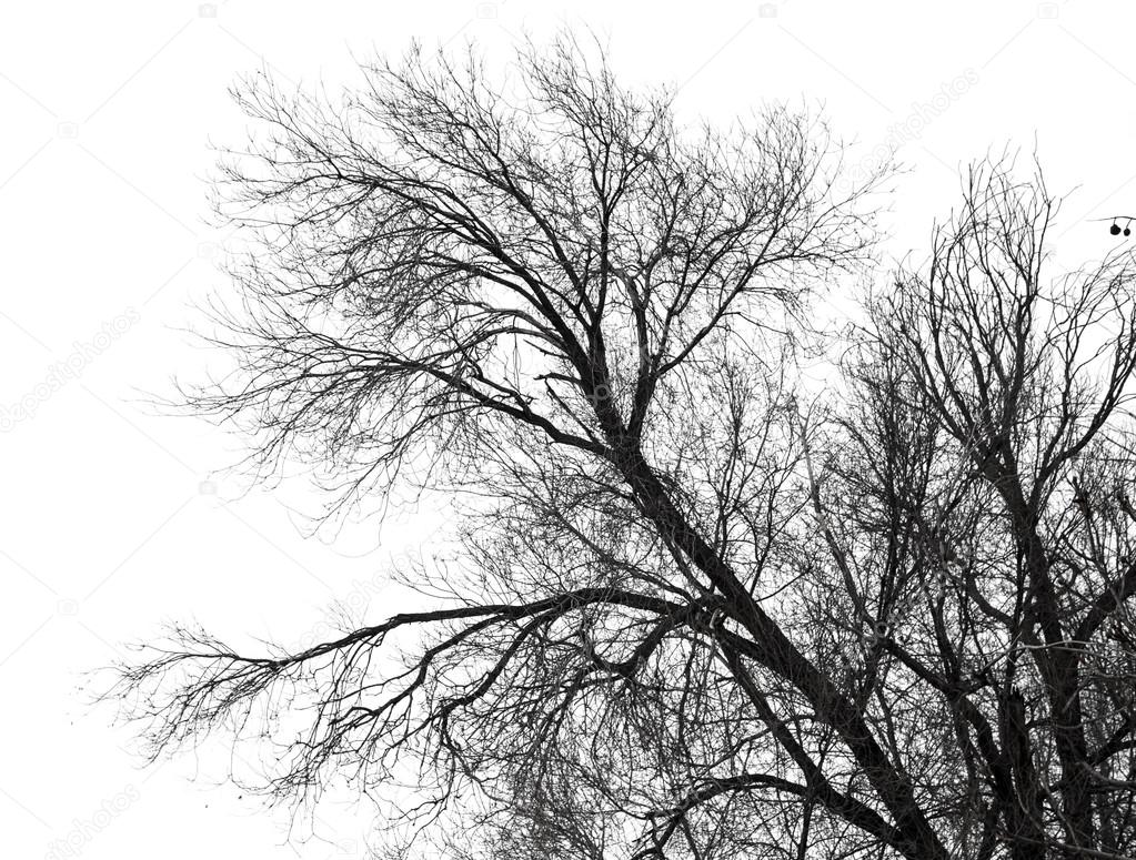 Bare branches of a tree on a white background