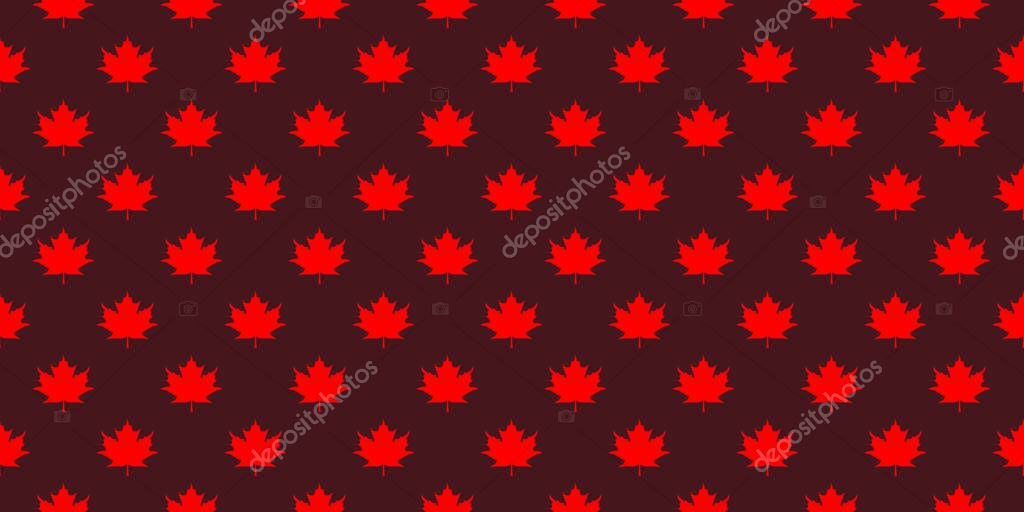 Pattern of red maple leaves on a brown background. template for application to the surface. Horizontal image. Banner for insertion into site.