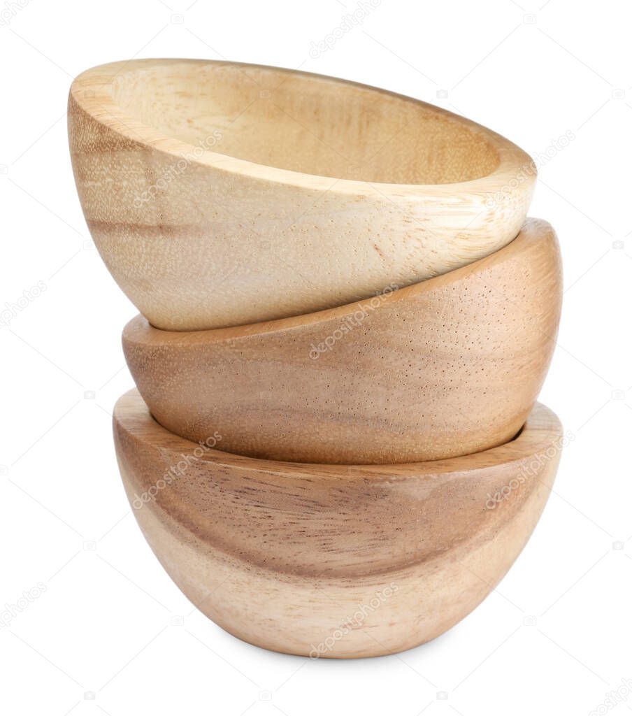 - Set of wooden bowls on white background