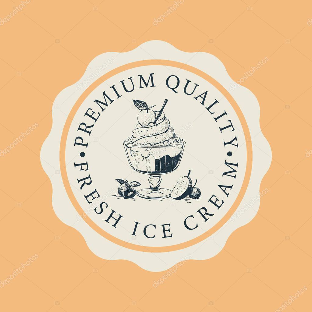 Ice cream Hand Drawn Design Element in Vintage Style for Logotype, Label, Badge and other design. Ice cream shop retro vector