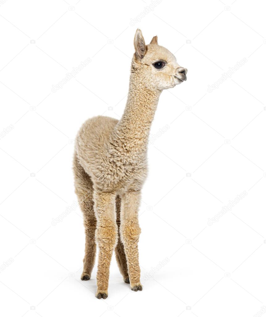 - Light fawn young alpaca, eight months old - Lama pacos, isolated on white