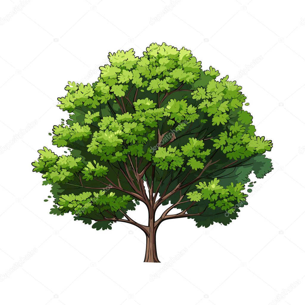 - Cartoon realistic Tree Isolated on White Background. Cute green plant, forest. Can be used to illustrate any nature or healthy lifestyle topic.
