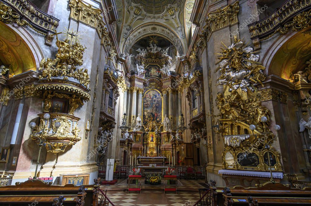 - Vienna, Austria. Interior of Peterskirche or St. Peter's Church. Baroque Roman Catholic parish church on Petersplatz.
