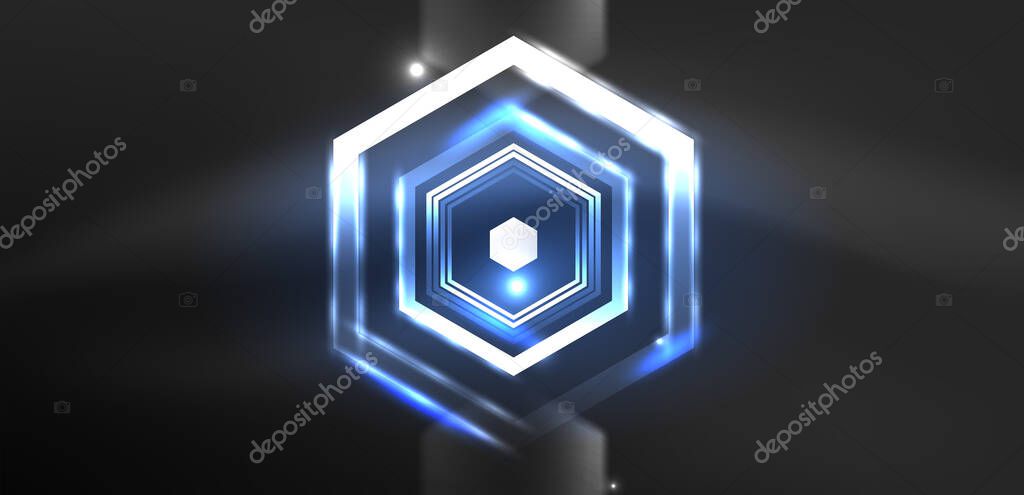 - Hexagon abstract background. Techno glowing neon hexagon shapes vector illustration for wallpaper, banner, background, landing page, wall art, invitation, prints, posters