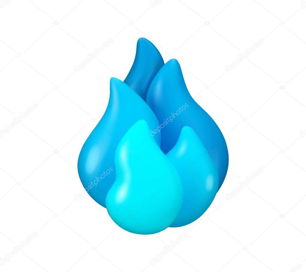 - Vector 3d gas burning icon. Blue flame isolated on a white background. Power or energy concept illustration, magic cartoon fire