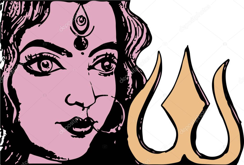 - Drawing or Sketch of Hindu Goddess Durga or Kali Mata Outline Editable Illustration