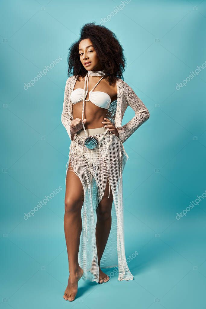 LEISURE WHITE COLORFUL BEAUTIFUL SEASONAL FEMALE YOUNG SUMMER BEAUTY MODEL STYLE FASHION POSE ELEGANT STYLISH WOMAN BODY TRENDY VACATION CHIC ATTRACTIVE GORGEOUS STUNNING SENSUAL POSING EXOTIC SWIM RADIANT SLIM CONFIDENT GRACEFUL FASHIONABLE GLAMOROUS TREND ALLURING SWIMWEAR SWIMSUIT BEACHWEAR AFRICAN AMERICAN BLUE BACKGROUND