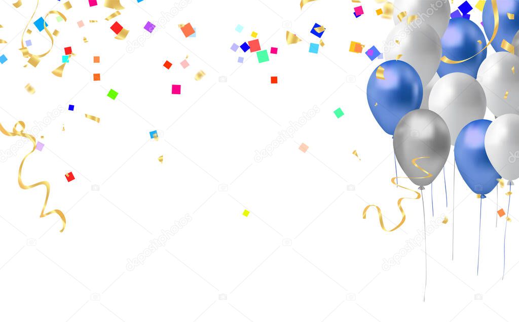 - Celebration background with balloons and confetti. Vector illustration.