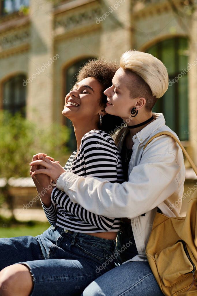 LOVE FEMALE SITTING YOUNG WOMEN HAPPINESS JOY OUTDOOR CAUCASIAN GIRLS CONNECTION COUPLE STYLISH DIVERSITY SUPPORT LIFESTYLE EMOTIONAL TOGETHERNESS HARMONY TRUST CASUAL UNIVERSITY CAMPUS EMBRACE CLOSENESS BENCH HUG SHARING RELATIONSHIP STUDENTS SISTERS AFFECTION SOLIDARITY CARING BONDING UNDERSTANDING MULTICULTURAL INTERRACIAL LGBT AFRICAN AMERICAN LGBTQ