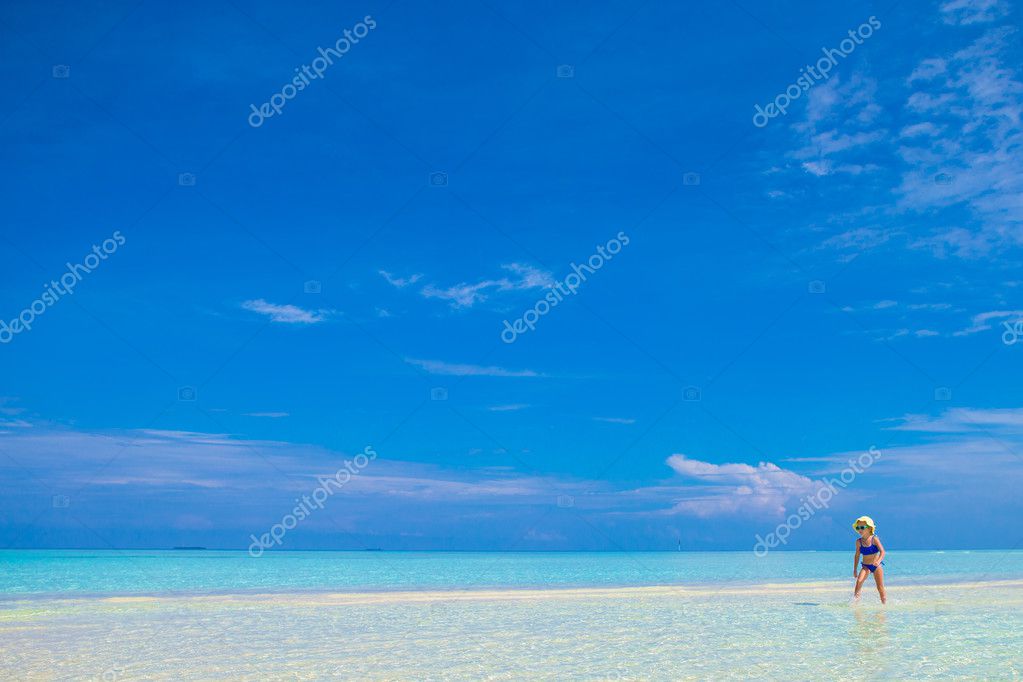 Young beautiful woman at shallow tropical water