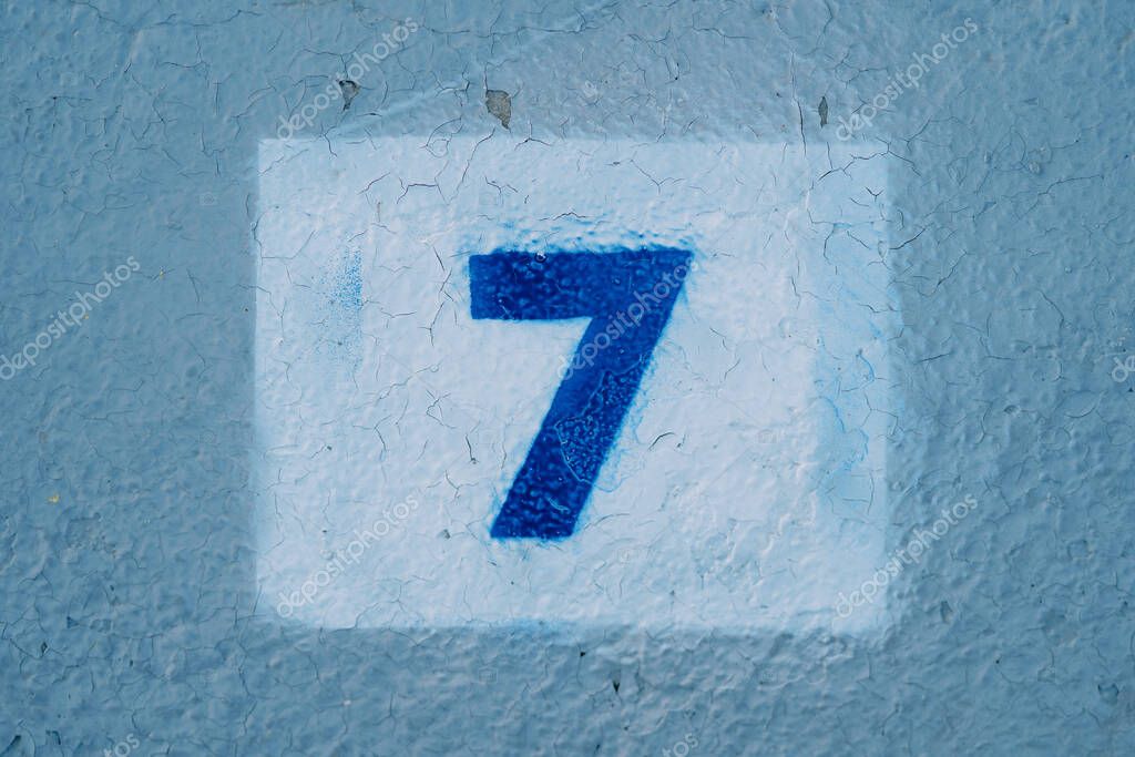 - Number seven drawn on a blue wall in a rectangle. High quality photo