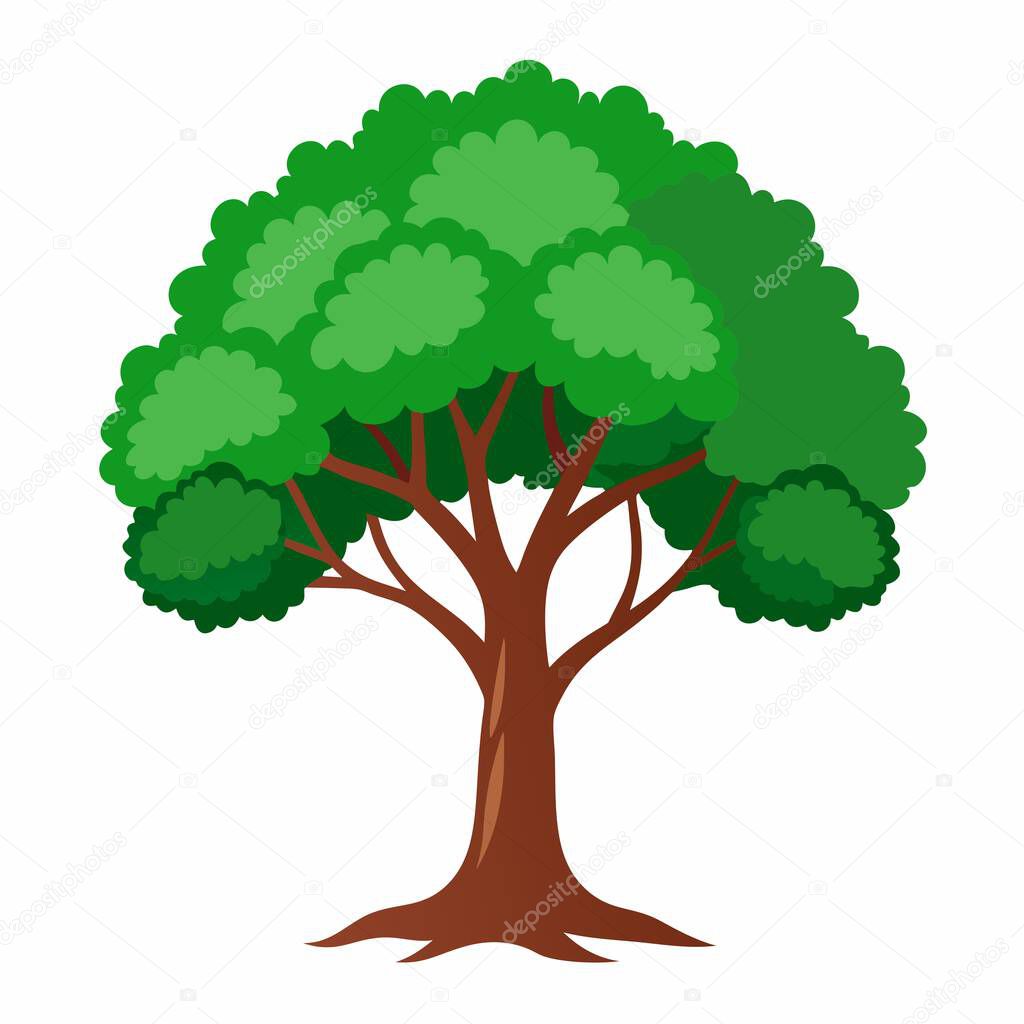 Illustration of a vibrant cartoon tree with lush green foliage, representing nature, growth, and the environment