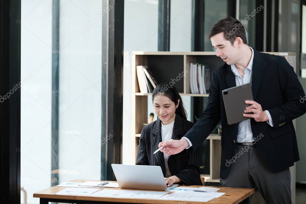 COMPUTER BUSINESS FEMALE SITTING YOUNG PEOPLE SUCCESS CAUCASIAN MALE MAN TECHNOLOGY CORPORATE OFFICE SUIT TWO WOMAN COMMUNICATION CONVERSATION WORKING TALKING LAPTOP OCCUPATION PROFESSIONAL JOB BUSINESSMAN DESK PLANNING TOGETHER TOGETHERNESS LOOKING FINANCE PROJECT DISCUSSION COMPANY REPORT TEAM WORKER TEAMWORK WORKPLACE MANAGEMENT SECRETARY MEETING BUSINESSWOMAN COOPERATION PARTNERSHIP BOSS EMPLOYEE BRAINSTORMING COLLEAGUE