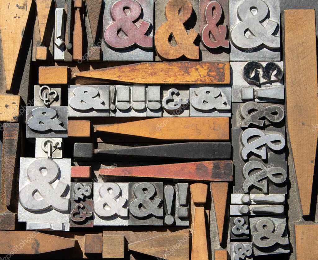A collection of various Ampersands & Exclamation marks, letterpress blocks