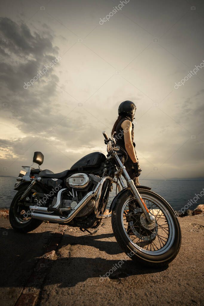 SKY TRAVEL FREEDOM OUTDOORS SERENE TRANSPORTATION STEEL MALE SEA BLACK STYLE VINTAGE ROAD LEATHER FASHION CLASSIC SUNSET DUSK COOL TWILIGHT HORIZON HELMET CLOUDS SCENIC ATMOSPHERE RIDE JOURNEY ADVENTURE GOGGLES WHEELS TOUGH BIKER RIDING MOTORBIKE MOTORCYCLE CHOPPER RUGGED MOTORCYCLIST ROAD TRIP OPEN ROAD FACE COVERING BIKER LIFE