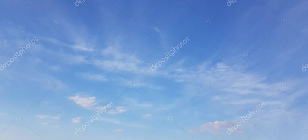 - White clouds of different shapes in the blue sky, windy spring background