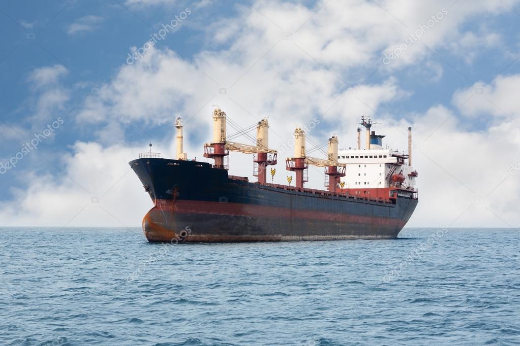 - Dry cargo ship floating on the sea