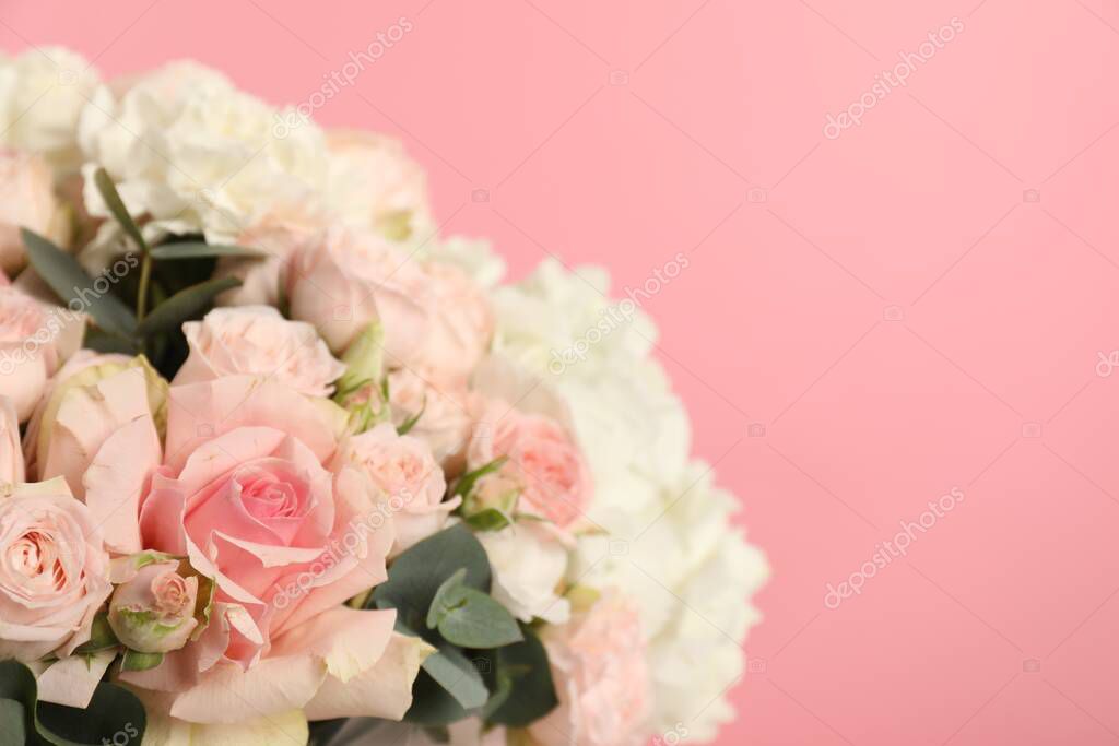 COLOR BACKGROUND OBJECT DESIGN COPY SPACE GIFT LUXURY ANNIVERSARY BEAUTIFUL BIRTHDAY DECORATIVE PRESENT CLOSEUP DELICATE ELEGANCE BEAUTY FRESH PLANT PETAL BLOOM BLOSSOM FLORA FLORAL FLOWER FLOWERS NATURAL BOTANY STYLE BOUQUET PINK TEXT AROMATIC ELEGANT STYLISH TENDER ROMANTIC WEDDING TRENDY AROMA BOTANICAL FLORIST ROSES TREND DIANTHUS EUCALYPTUS