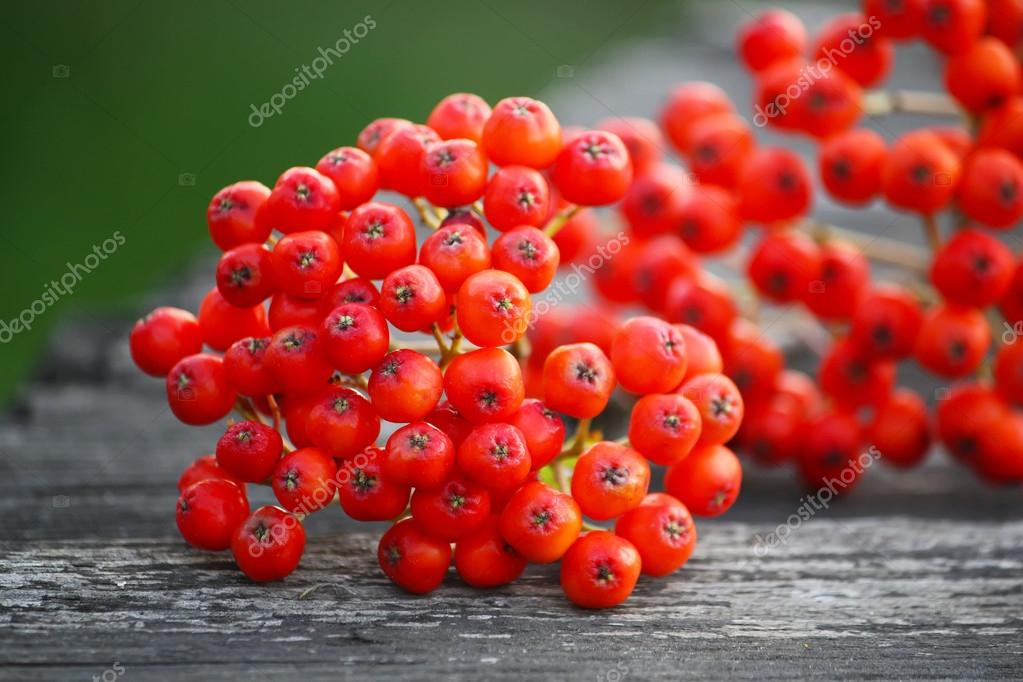 - Rowan berries on wooden boards