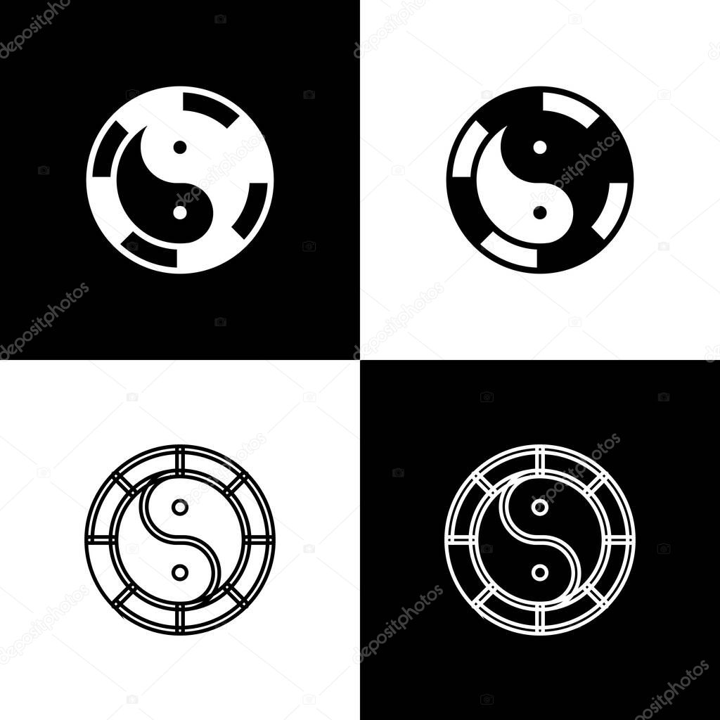 Set Yin Yang symbol of harmony and balance icon isolated on black and white background. Vector