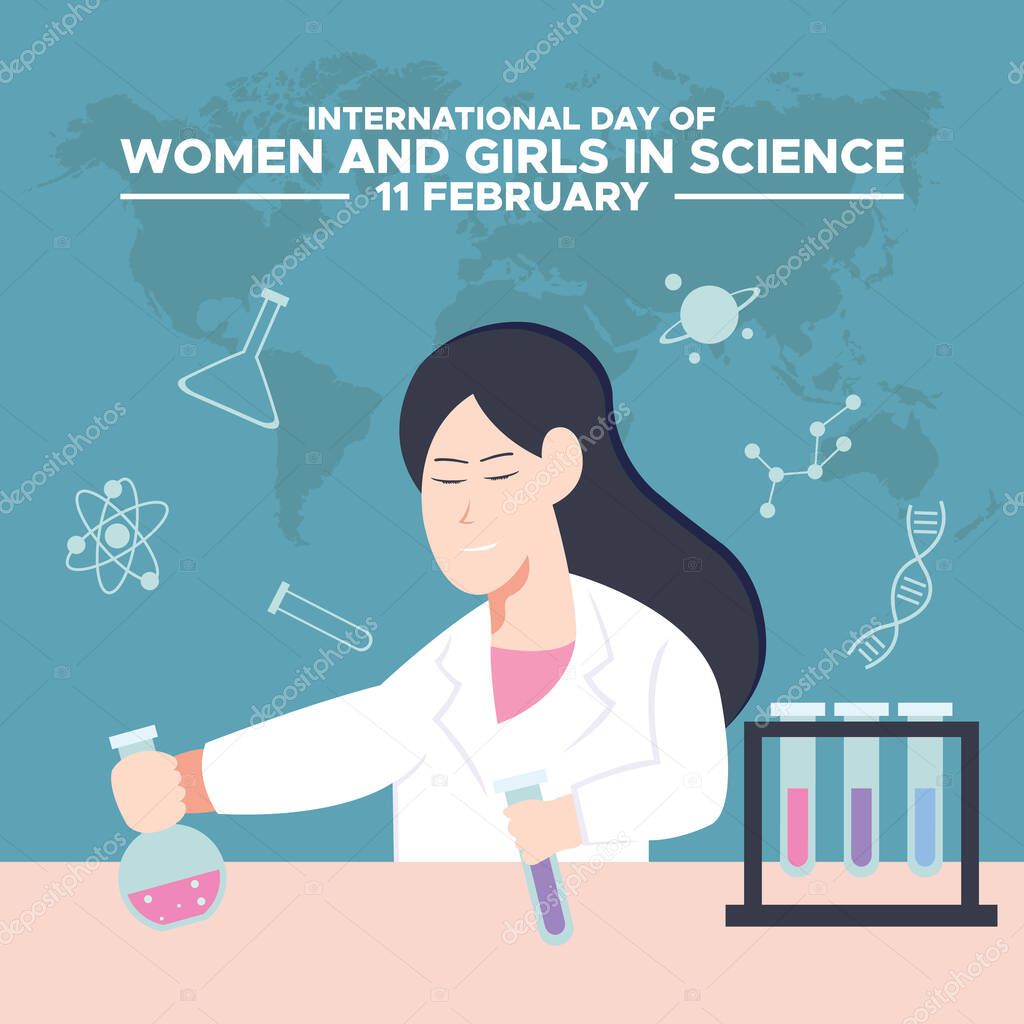 International day of women and girls in Science theme vector illustration. Suitable for Poster, Banners, campaign and greeting card.