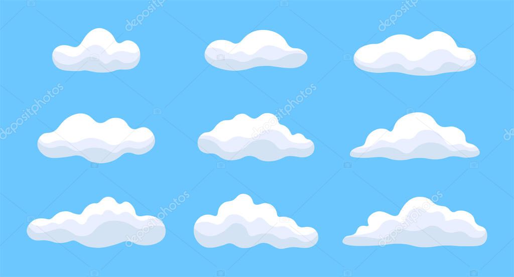 - Set of clouds isolated on blue background. Vector illustration. Cute clouds in cartoon style.