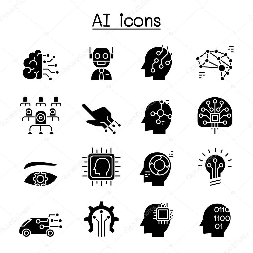 AI, Artificial intelligence icon set in glyph style
