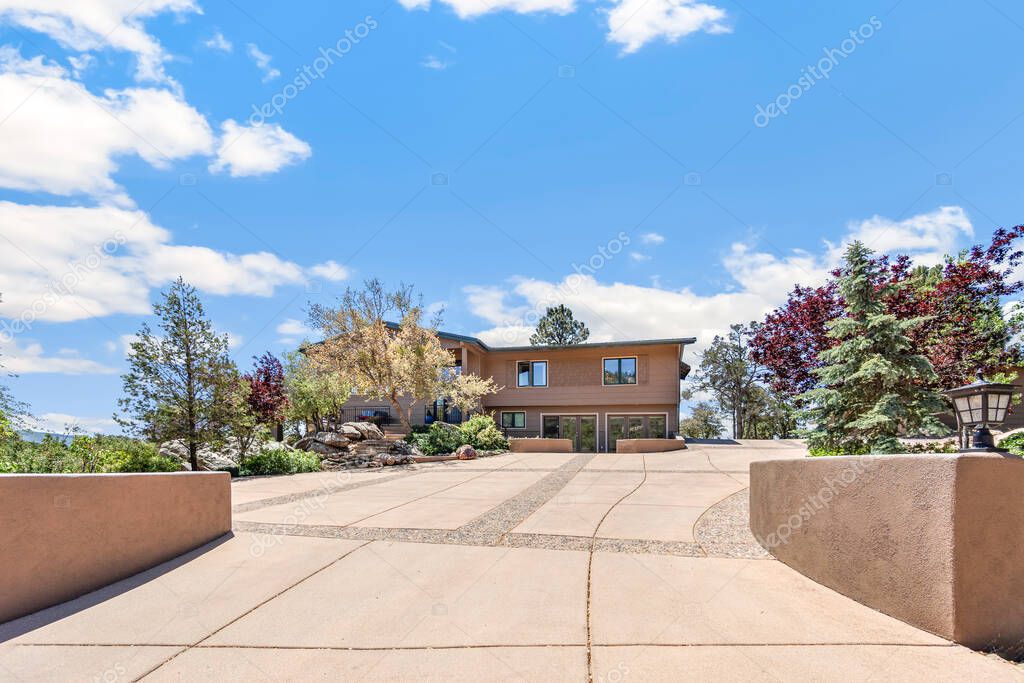 - A large and beautiful house is grandly sitting atop a lush, green hillside, showcasing breathtaking views of the surrounding area